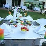 El hotel Ramada Usak sirve un desayuno continental cada mañana. El bar lounge es un buen lugar para relajarse con bebidas suaves. Este hotel se encuentra bastante cerca de Karun Mangal Evi y sirve comida exquisita.